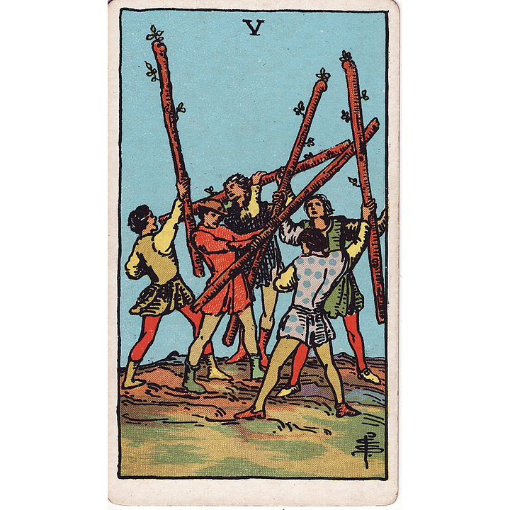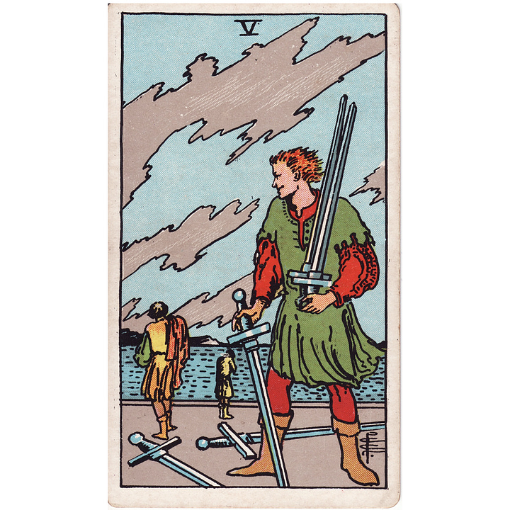 I still will swear to you that five is the best-mannered of the numbers, or at least the most compatible with my combination of softness and snark. This fifth year, it will only happen once, and then the years before will be smaller than the years after, and go on getting smaller. How terrifying, the tightrope of life on this side, how far there is to fall, and every day farther. It will always be five years that I fought for small instances of restraint, maybe months at a time. It will always be fives, for me. In the tarot, fives represent change and conflict. They are tense cards, they have fighting and sorrow in them. They have something on the other side, the success of the sixes. I am better in tarot than in the rest of life at recognizing the promise in difficulty. I guess with the cards I have a growth mindset, at last. I am okay with fighting, I always have been doing it, even if it’s only with myself. I fought my way to these five years free, I did, I do. Beneath the feet of the figures in the five of wands, the churned dirt looks like a whole landscape: mountain ranges, hills and plains, the light moving on not just handfuls of dirt but oceanfulls, crags and cliffsides. Does it matter, to believe I’m big as that, even if I’m sometimes very small?